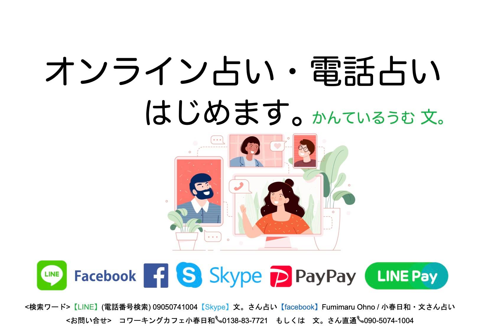 ≪オンライン・電話・メール占い≫ 自宅で占いを受けたい方へ。遠方の方にもお気軽に鑑定ができるようになりました。 詳しくはこちらへ
